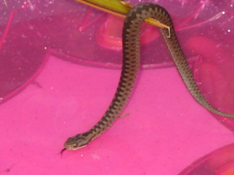 In the foreground of this picture on the left is a square of sweet corn. However, gardening does have its hazards....a young viper found in the garden one evening.